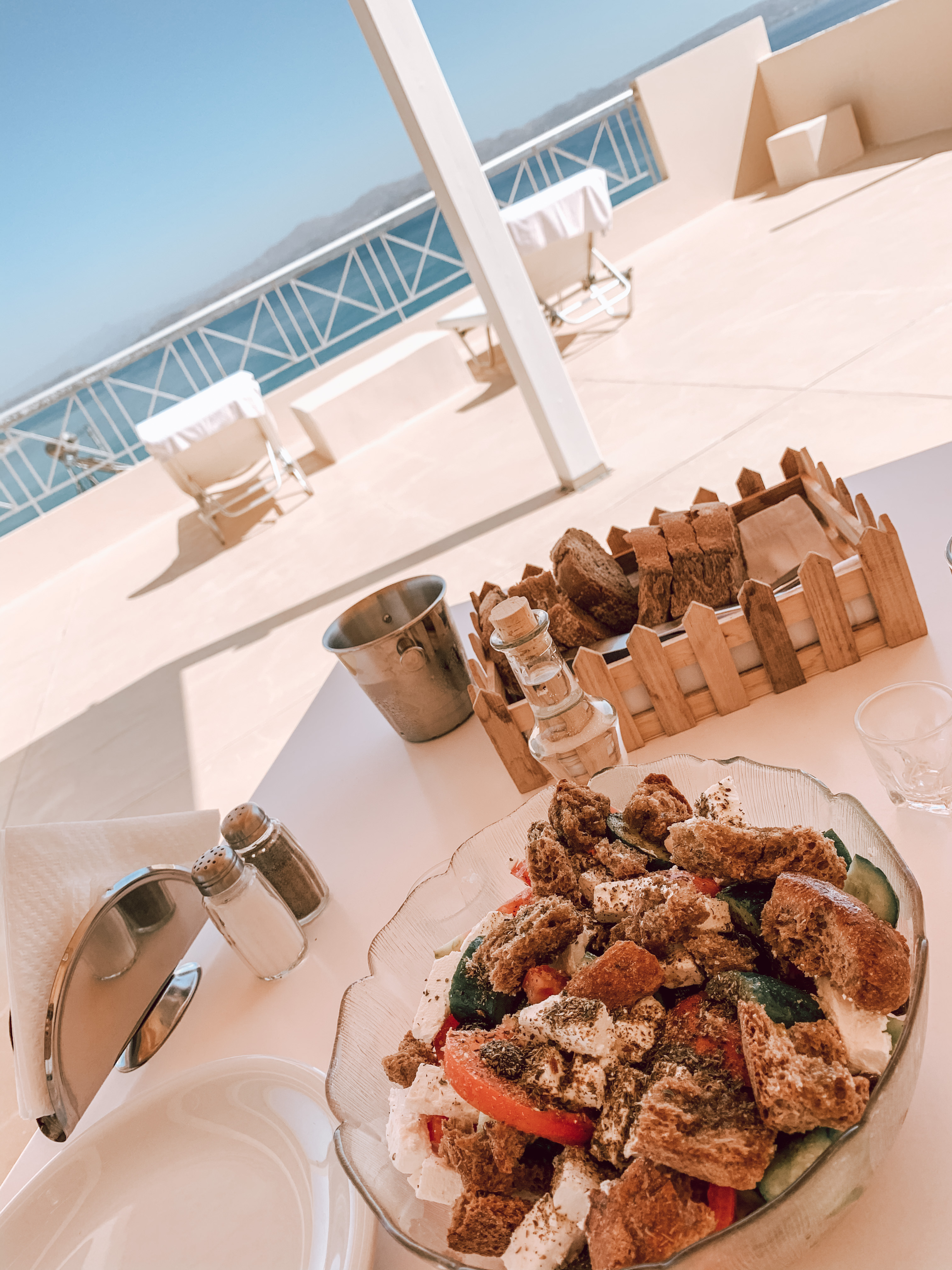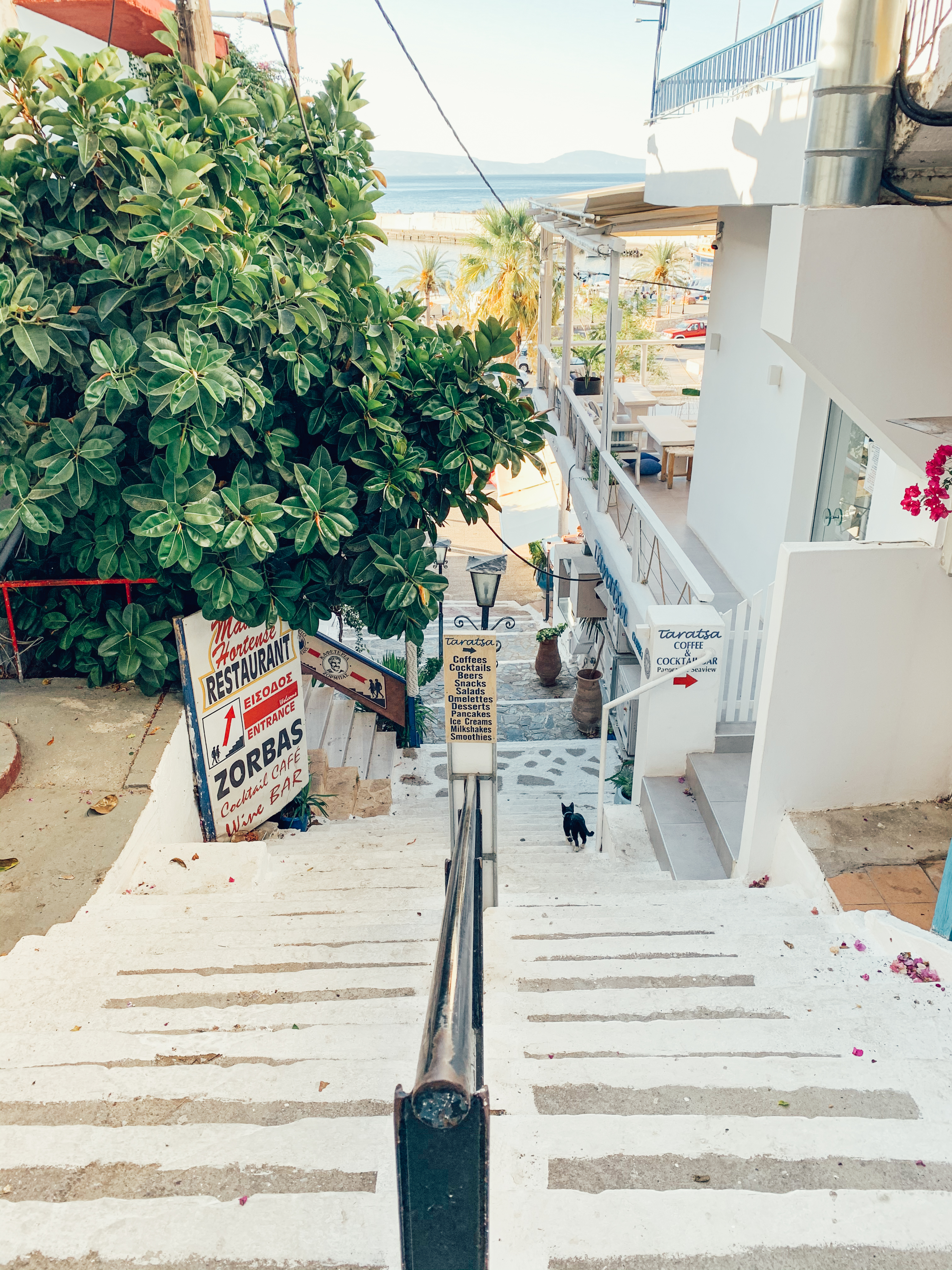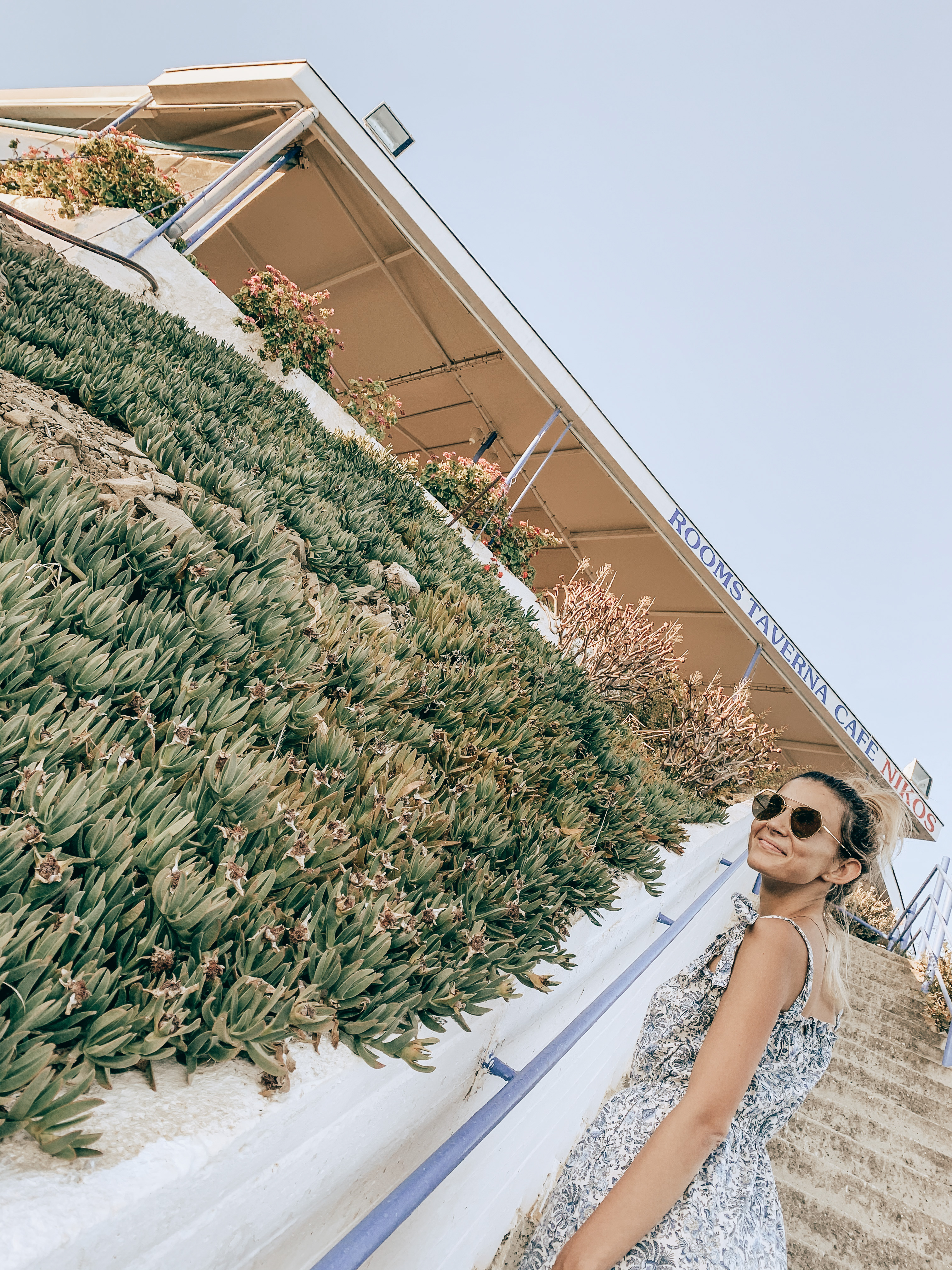 На следващия ден извървяхме 8 километра пеша през планината като напълно послушах съвета на Димос. Не мислих за нищо друго освен слънцето, морето и как вятърът да не ми издуха шапката. Пътешествието ни финишира в таверната на Никос и семейството му. Те имаха съвсем друга теория за живота. За тях той беше основно работа. Никос, най-възрастният и създател на таверната и бунгалата до нея, е работил 30 години здраво в Германия, за да се върне и създаде нещо в родината. И следва само работа, работа, работа. Слънцето и морската вода за него и семейството му бяха само средство за привличане на туристи.